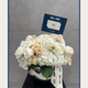 Arreglo en base de vidrio plateado con flores de temporada premium. Las flores, así como los colores pueden variar según la temporada y disponibilidad.